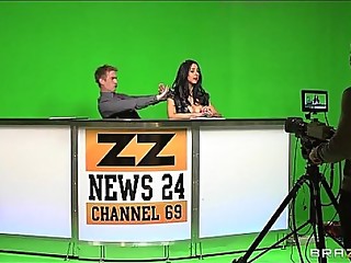 News anchor Louise Jensen is distracted at work by a huge cock
